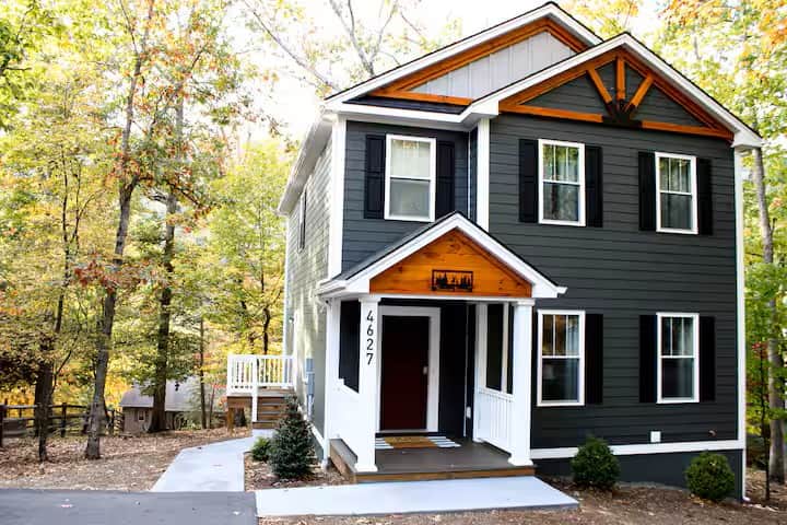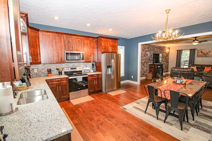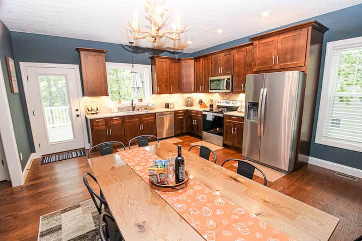 Guests love this home’s spaciousness for a comfortable stay. Mountain Dreams is a custom-built 3 level mountain home located in the heart of the Massanutten resort. The home features multiple outdoor spaces with a fire table, outdoor dining, hot tub and gas grill. The interior of the home showcases custom oak stairways, spacious bedrooms and a custom kitchen with granite and stainless-steel appliances. The family room has a pool table and big screen smart TV. Every bedroom has a smart TV.